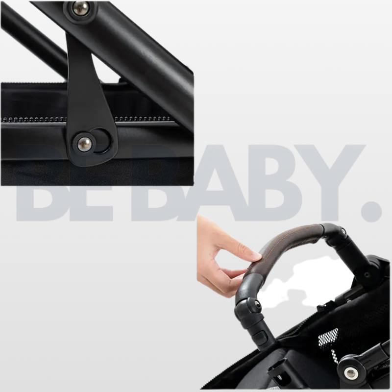 Az állítható fogantyú lehetővé teszi a magasság egyszerű beállítását, ami kényelmes utazást biztosít mind a magasabb, mind az alacsonyabb szülők számára.