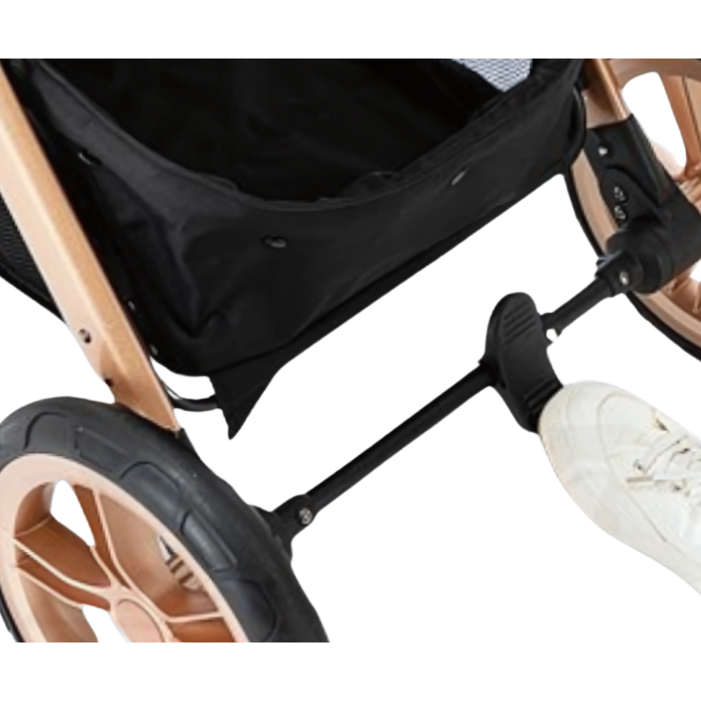 Felügyelet és biztonság a lába alatt. A babakocsi fékrendszere egyszerű használattal és gyors reagálású kialakítással biztosítja az irányítást. Legyen szó egy nyugodt sétáról vagy hirtelen megállásról, fékrendszerünk stabilitást és nyugalmat garantál.
