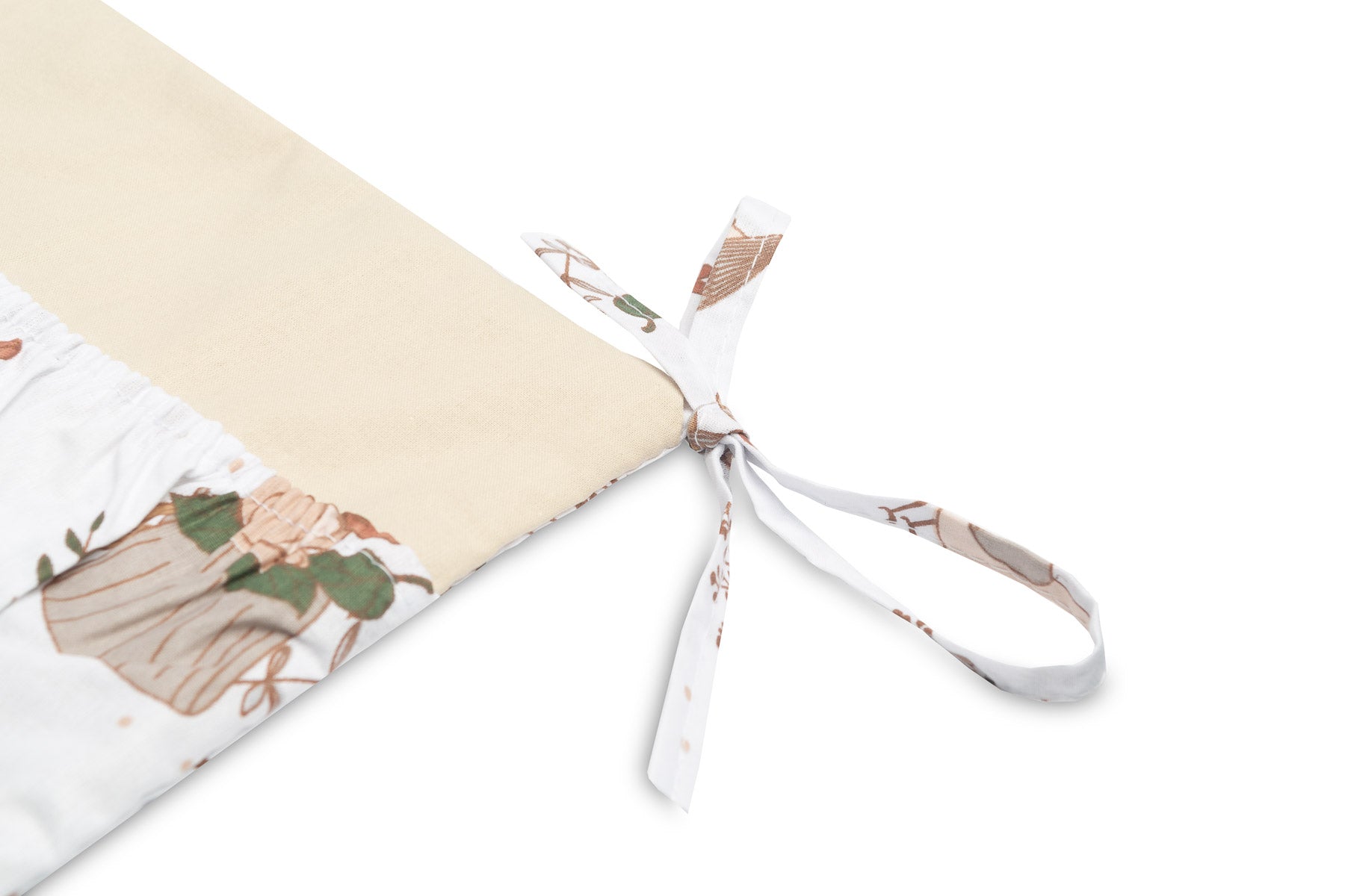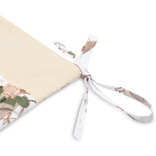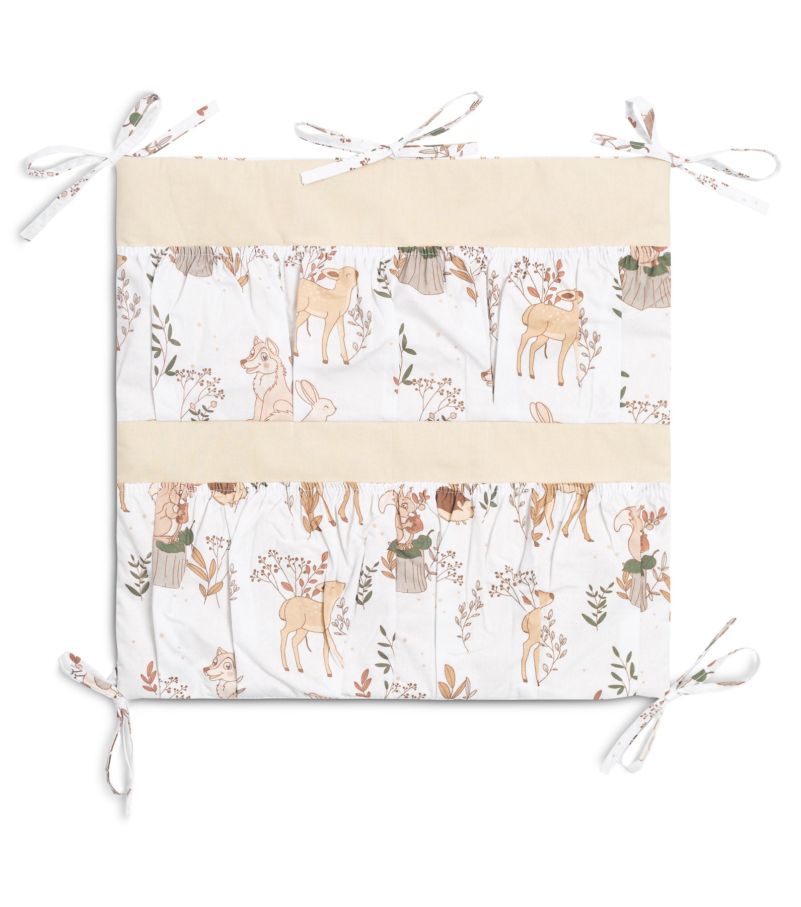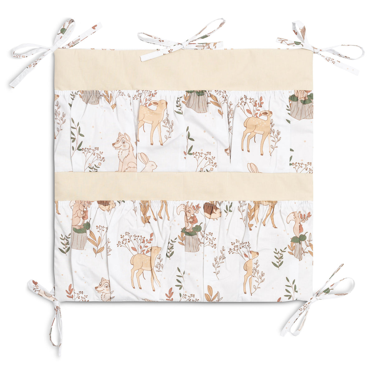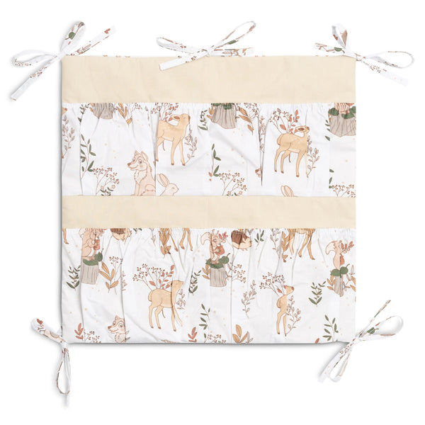 A kiságy szervezője nemcsak praktikus termék, hanem a baba szobájának dísze is. Összesen 5 zsebbel rendelkezik, amelyek rugalmas anyaggal vannak megerősítve, és minden szükséges kiegészítőt befogadnak. A szervező könnyen rögzíthető a kiságy keretéhez a bevarrt szalagok segítségével. Továbbá egy réteg szilikon fleece-szel van megerősítve. A külső rész 100% pamuttal van szegélyezve. A szervező kombinálható más termékeinkkel is.